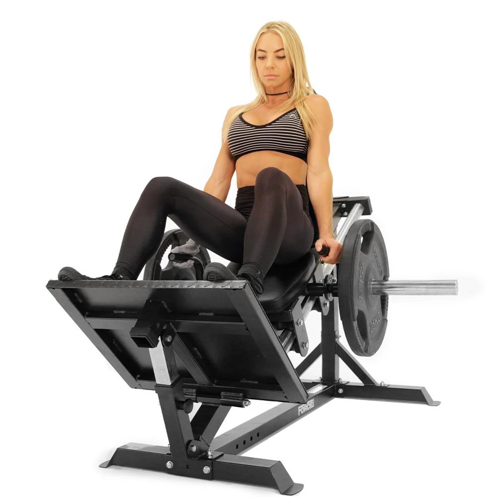 | SIMPLE AND VERSATILEThe Force USA® Compact Leg Press features 50mm sleeves for Olympic sized weight plates allowing you to add more weight to max out each workout. Adjusting the back pad or footplate angle and calf block height is simple thanks to commercial gym pop-pins. Safety pin positioning helps control proximity to the footplate. |