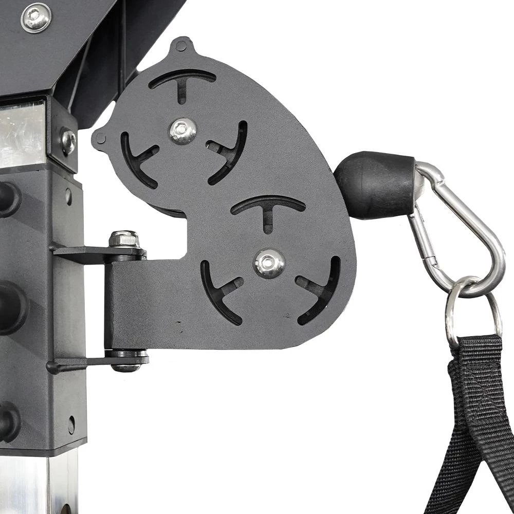 | SMOOTH, SUPER QUIET CABLE SYSTEMNo full-body workout is complete without jumping onto your favourite cable exercises. With a 2:1 ratio, the plate-loaded pulley system on your F50 All-In-One Trainer has a loading capacity of 110kg (each side) so you can perform a huge range of exercises. The 2000lbs aircraft rated cables are also fitted with high-grade commercial sealed bearing pulleys for a quiet, smooth motion to really target and isolate your upper body muscles. |