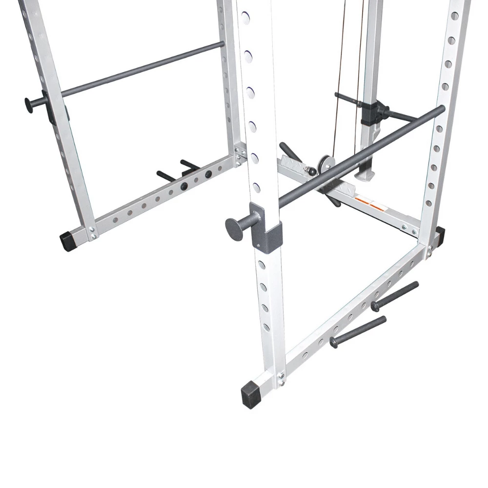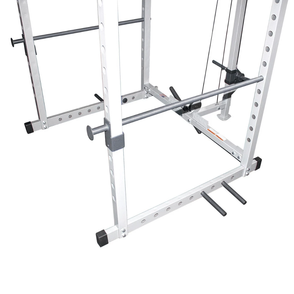 The rack comes standard with the lat pull-down option to help expand your workout possibilities. Start free weight training and incorporate cable exercises into your home gym workouts!