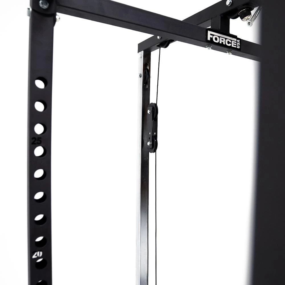 The Force USA® PT Power Rack Lat Pull-down / Low Row attachment allows you to easily add lat pulldowns, tricep pushdowns, low rows and many more movements to your training routine. Simply connect to the back of your Force USA® PT Power Rack and add plates to the loadable sleeves for resistance. Extended 45cm from the rear of your Force USA® PT Power Rack, the Lat Pull-down / Low Row Attachment allows you room to perform seated exercises comfortably and easily.