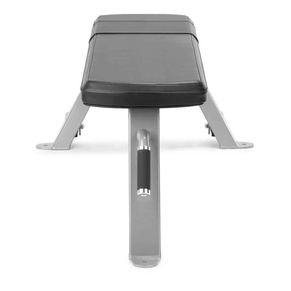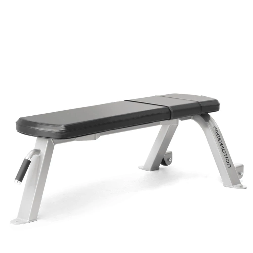 The Freemotion Flat bench boasts a lot of features in one unit. Transport wheels and a padded handle make it easy to move around the weight room. Tripod design creates a lighter unit without sacrificing stability. Comfortable padding provides support, even under heavy loads.