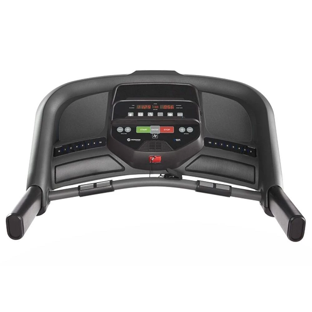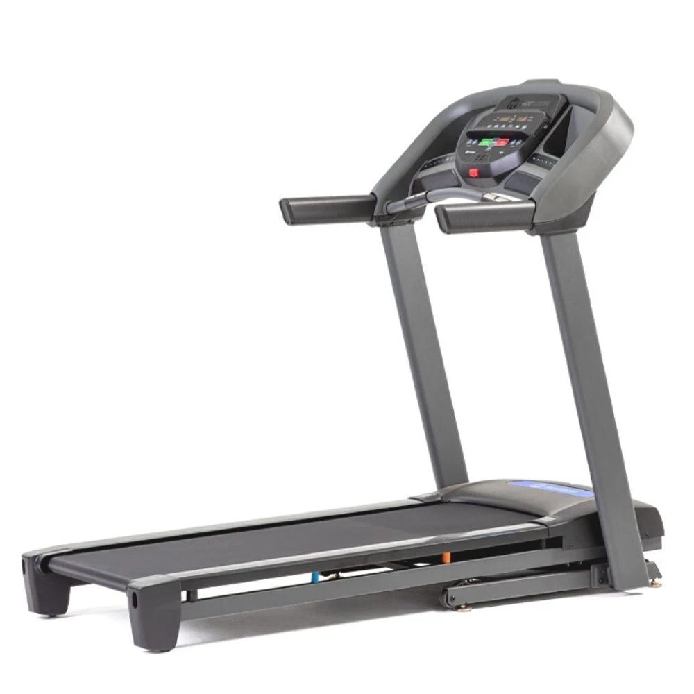 Hit the ground running with quick and easy setup in 30 minutes or fewer. Intuitive controls for no-nonsense workouts. Bluetooth speakers and a secure device holder let you work out with your fitness classes, music and entertainment. Ultra-quiet 2.5 CHP motor recalibrates with every footfall with no lags or surges. 55” deck with shock-absorbing 3-zone cushioning supports walking, jogging or running.