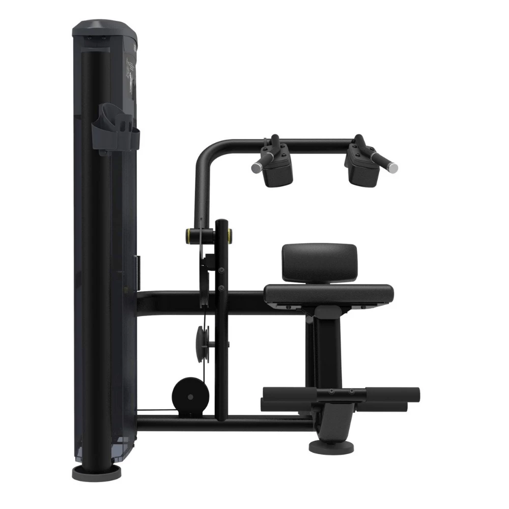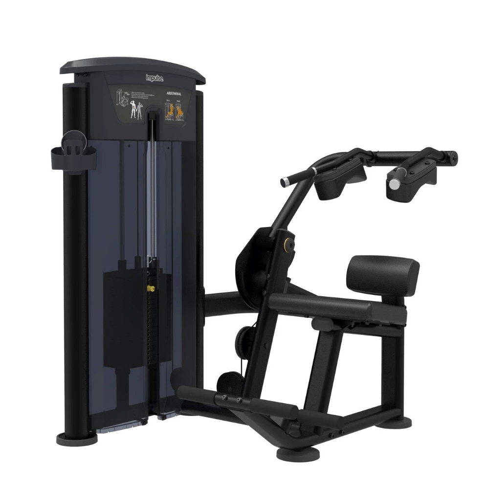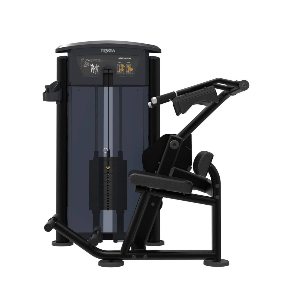 Pin selectorized equipment for working out rectus abdominal muscle. The user can effectively work out the abdominal muscle by bending forward after choosing the appropriate weight.