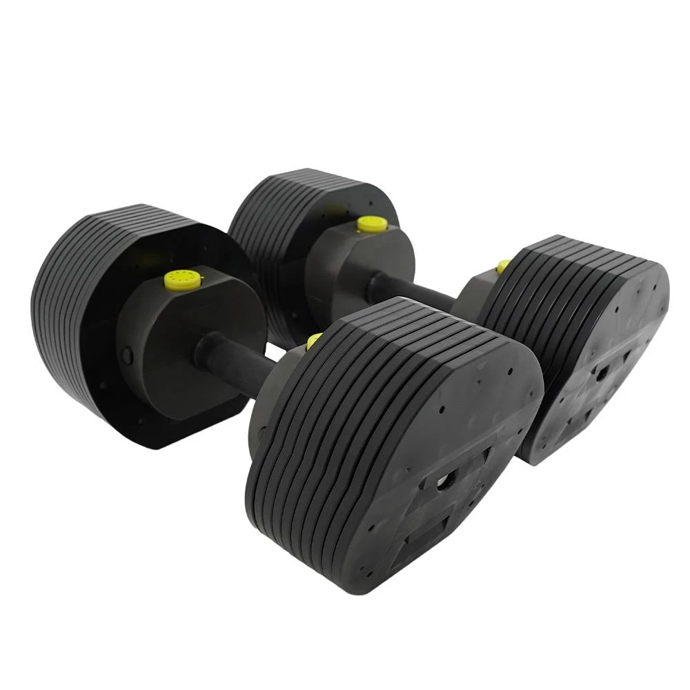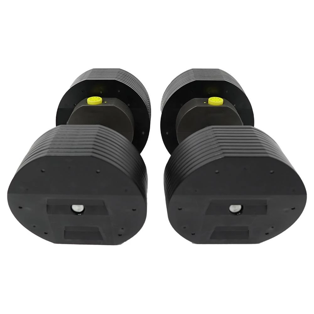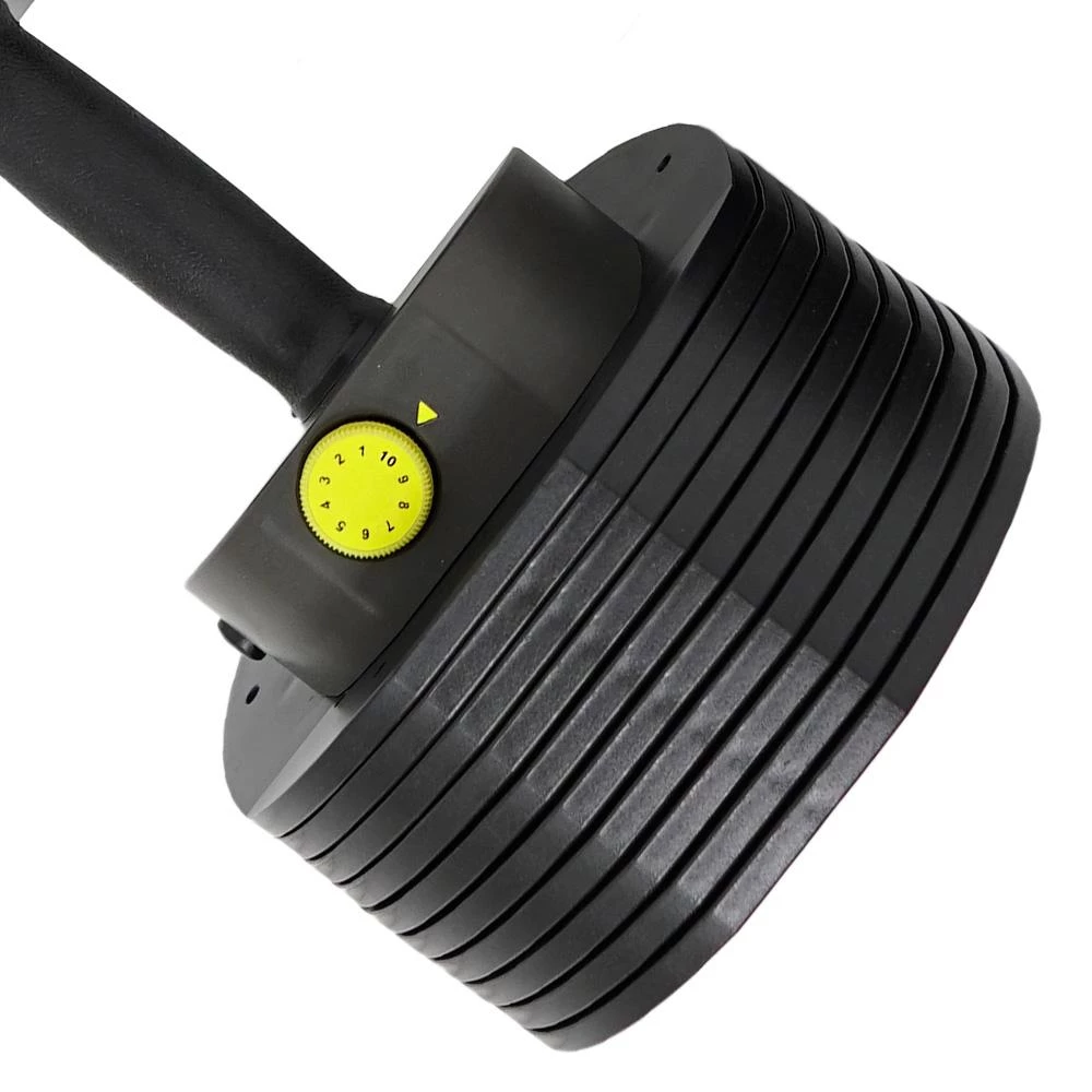 | EASY-TO-USE SELECTOR SYSTEMYour fully-loaded dumbbells are held in place in the patented weight plate cradle, with the release button oriented to the outside. To select your desired training weight, simply press the weight selector release button and the dial will pop up. Choose your desired training weight and start your workout.
