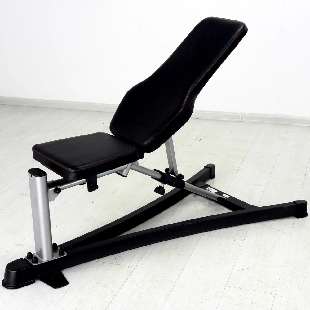 Compact, strong and highly versatile, the V-shaped Johnson FID Utility Bench offers a wide range of strength and fitness benefits for your home or studio gym. You can move swiftly between flat, include and decline positions to really target and isolate arm, shoulder, chest and back muscles. Made with high quality steel, commercial grade non-rip upholstery leather and non-slip rubber pads, this is the perfect workout bench to incorporate into your Power Rack or All-In-One Trainer.