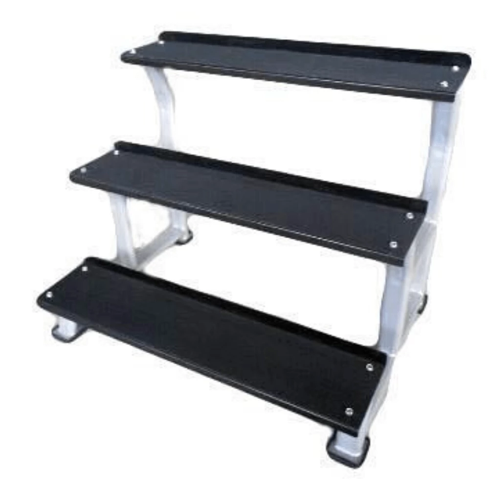 The 3 Tier Elite Kettlebell Rack is meant to hold kettlebells in place for safekeeping when they are not in use. Its structure makes the kettlebells easy to pick up and put back.