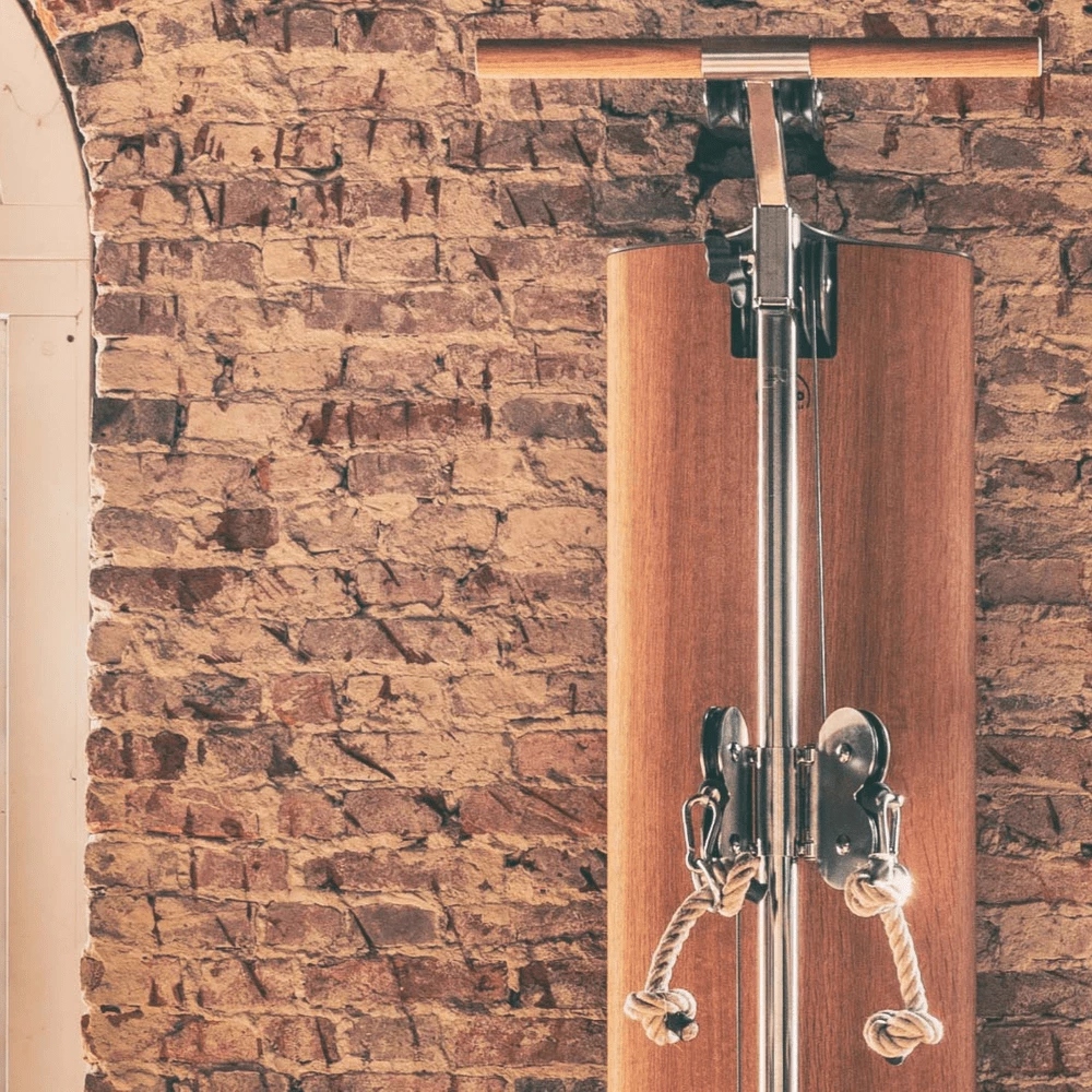 The NOHrD SlimBeam cuts a fine figure in-home fitness, as well, combining a stylish, sharp design with a sleek body. Thanks to its slender silhouette, curved shape and high-quality wood, the SlimBeam delivers a professional cable exercise station for every kind of functional training.