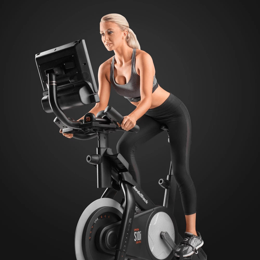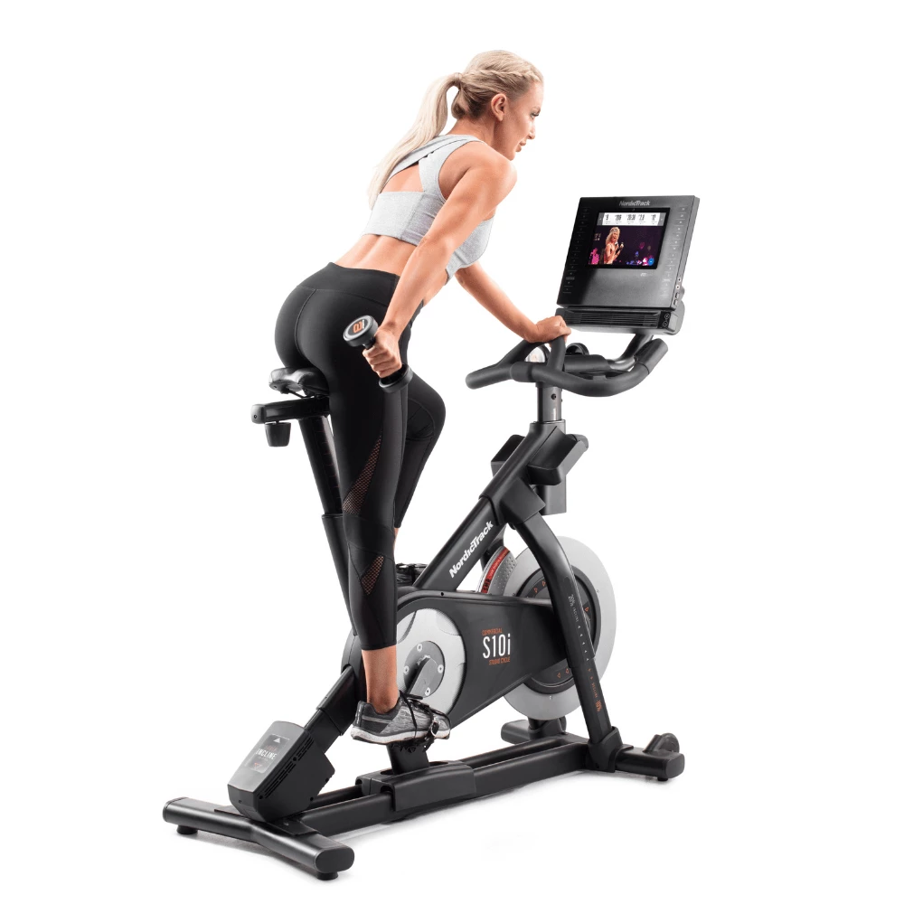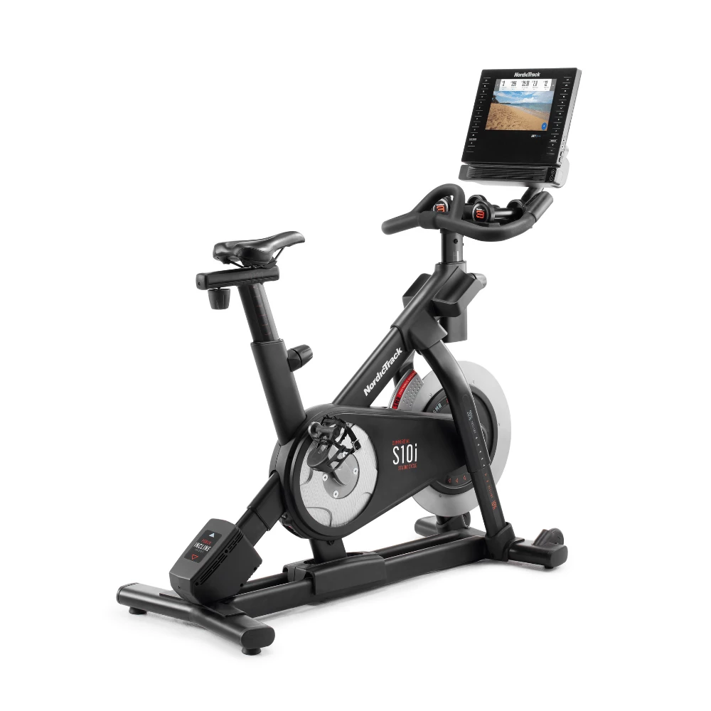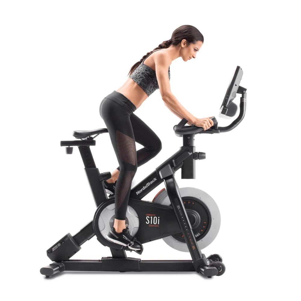 10” TOUCH SCREENThe 10” touch screen of the NordicTrack Commercial S10 Studio Bike allows you to see clearly the studio sessions that you choose to watch every day. You can cycle around the globe without leaving your home. There is also an auxiliary music port and 2 x 2″ digitally amplified speakers.