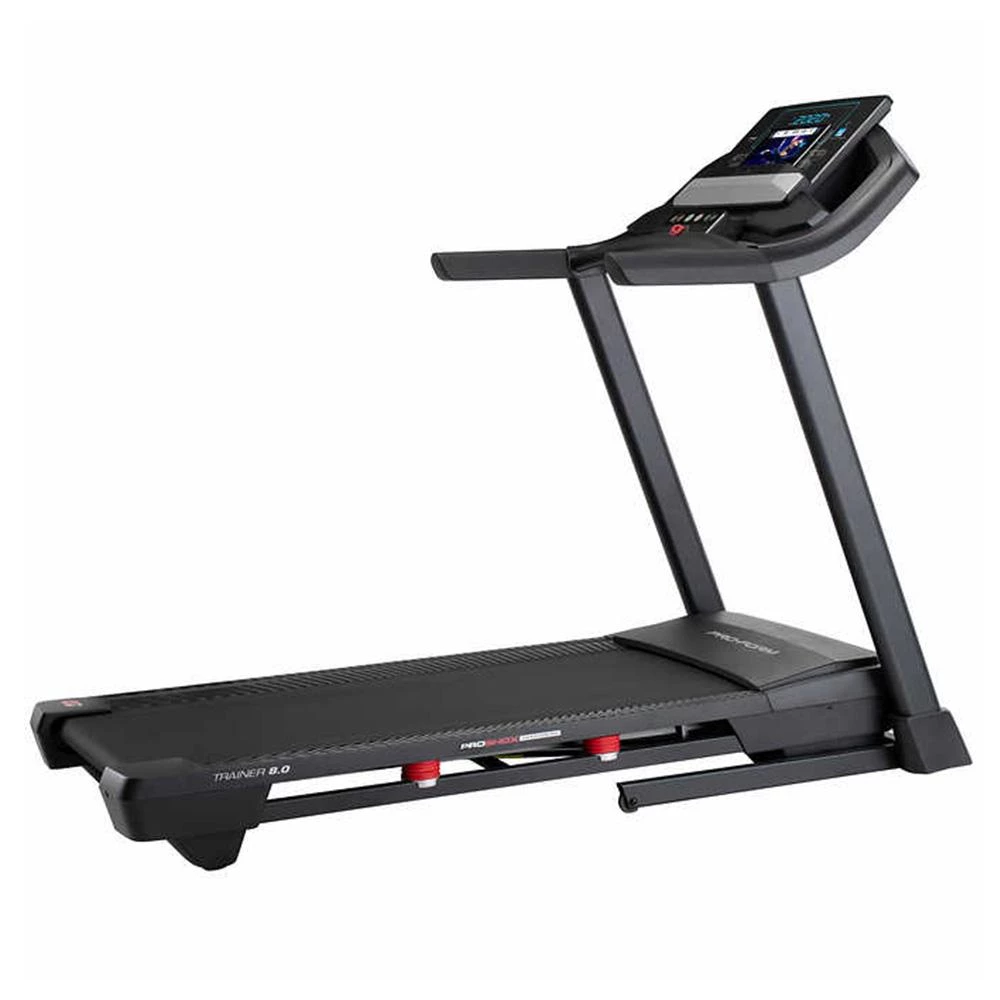 | FOLD IT UP AFTER YOU’RE DONE!Unlike most other treadmills on the market, the Proform Trainer 8.0 Treadmill can be easily folded up after you’re finished with your workout. The SpaceSaver® design with EasyLift™ Assist means you can conveniently move it and keep your training space neat and tidy. |
