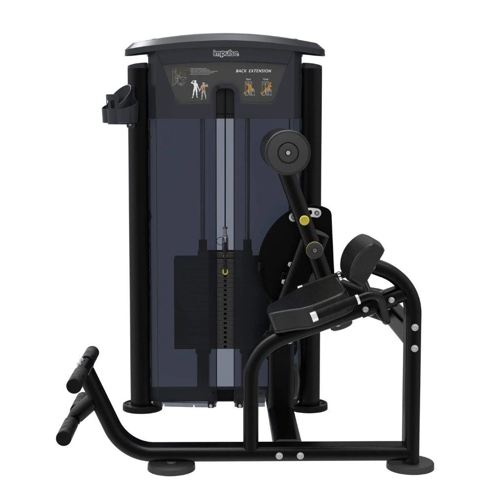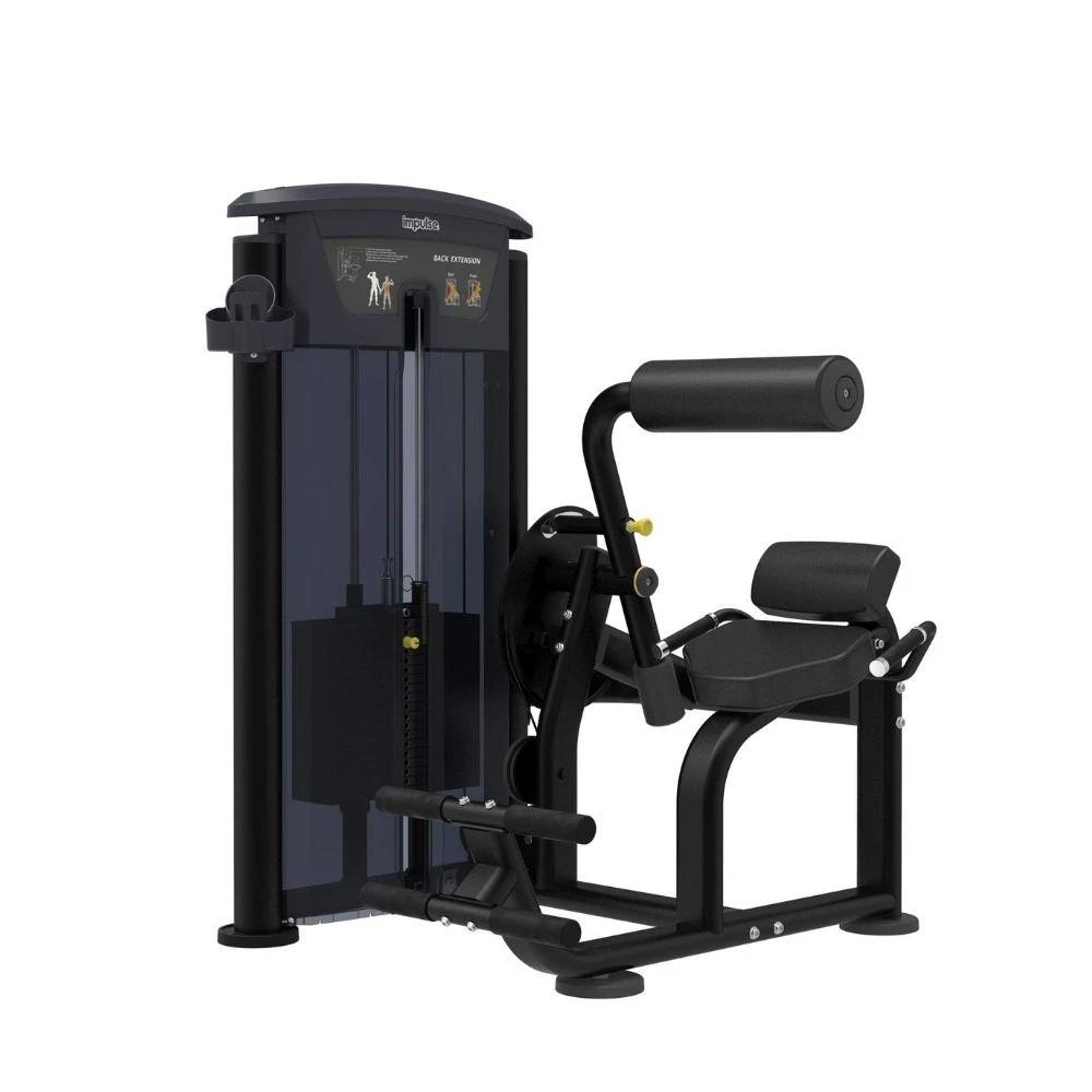 The Impulse Back Extension is a pin selectorized machine for working out Erector Spinae. The use can effectively work out the back muscle by adjusting the initial position and erecting the back backward after choosing the appropriate weight.