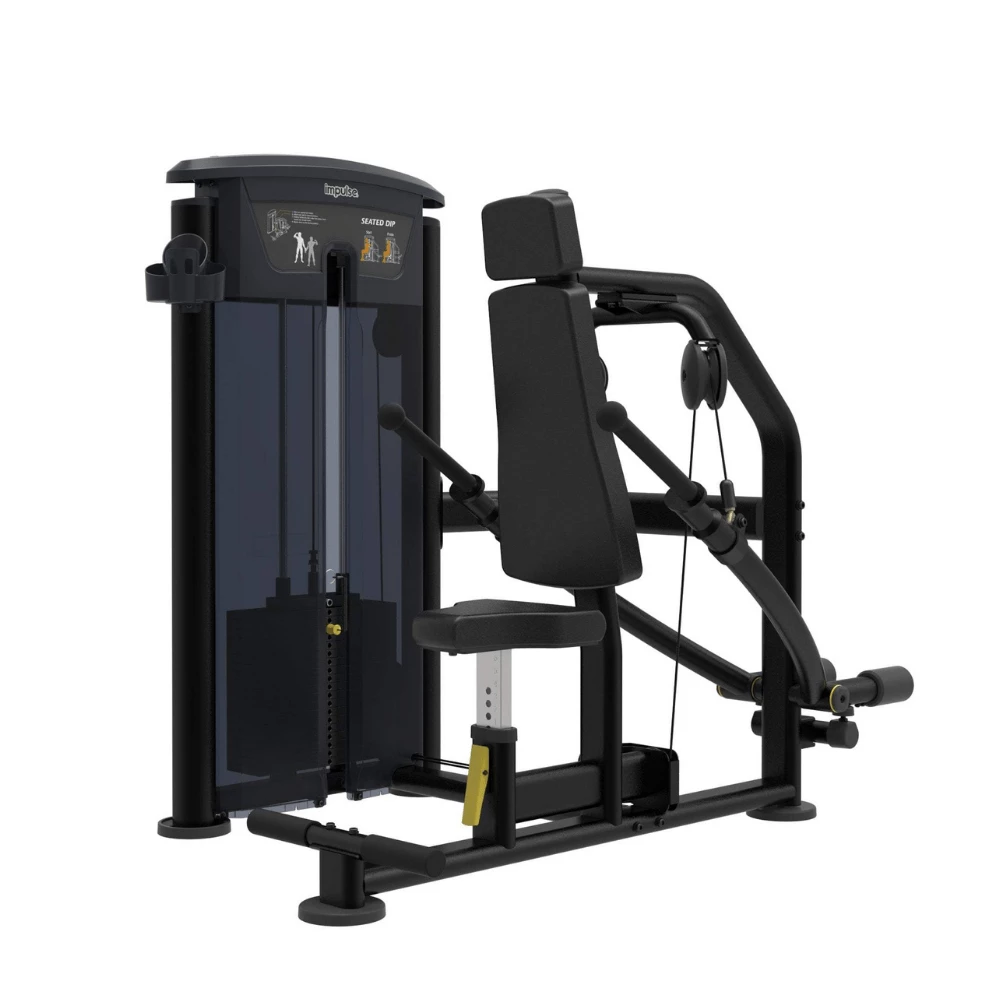 Pin selectorized equipment for working out triceps brachii muscle and secondly for working out serratus anterior muscle. The user can effectively work out the muscles of the upper arm and shoulders by pushing the actuating arm handles at two sides at the same time after choosing the appropriate weight.