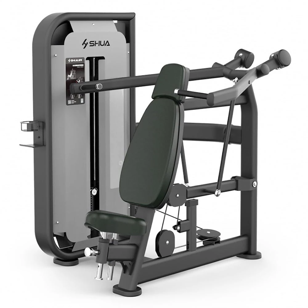 | PROFESSIONAL PERFORMANCE AND MAKESince 1996 SHUA has been manufacturing innovative commercial gym equipment for Olympians and professional bodybuilders. The Shoulder Press machine would be right at home in any modern training facility and is designed for heavy-duty, commercial use.
